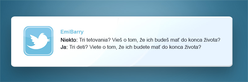 Pokiaľ tvoju pokožku zdobí jedno či viaceré tetovania, pravdepodobne sa ti stávajú dookola tie isté veci. Nemiestne poznámky, otázky typu „Čo to znamená?“ či nevyžiadané rady staršej generácie. V nasledujúcich tweetoch sú tieto situácie obsiahnuté priam bravúrne, tak si ich spoločne poďme prečítať. Nájdeš sa v nich?