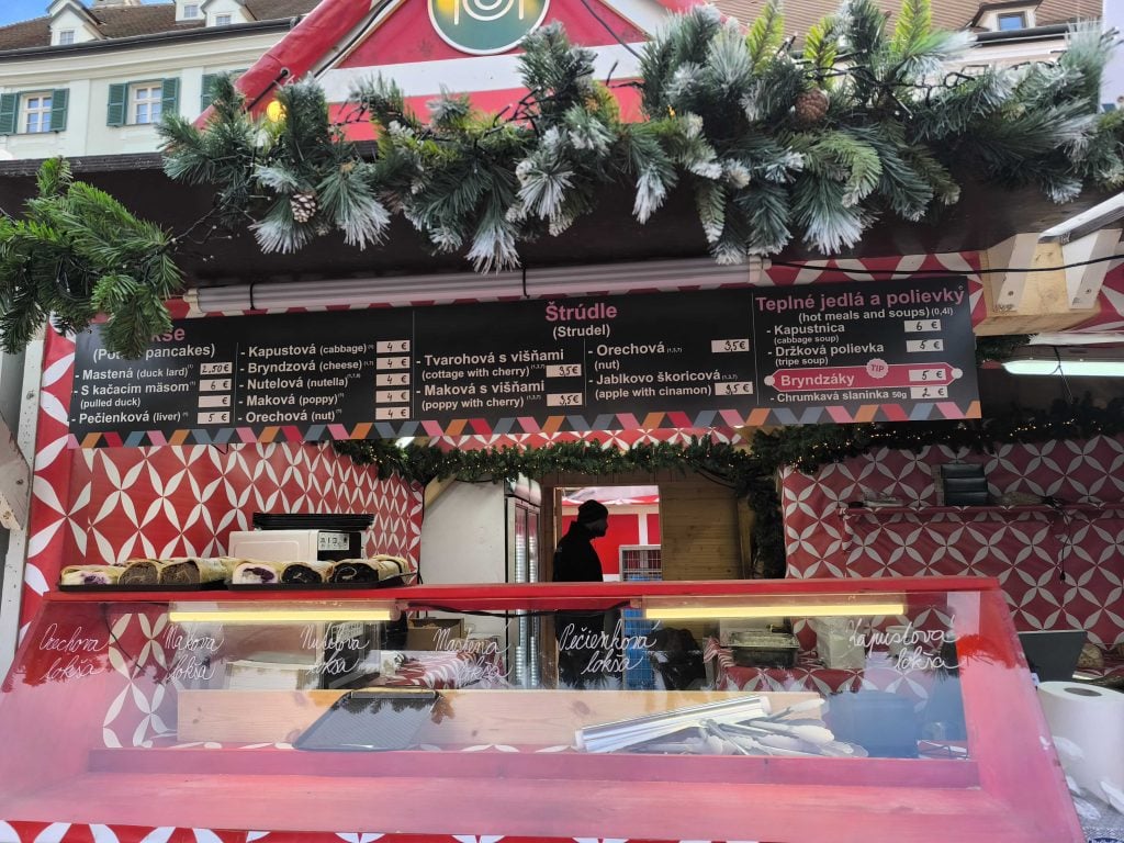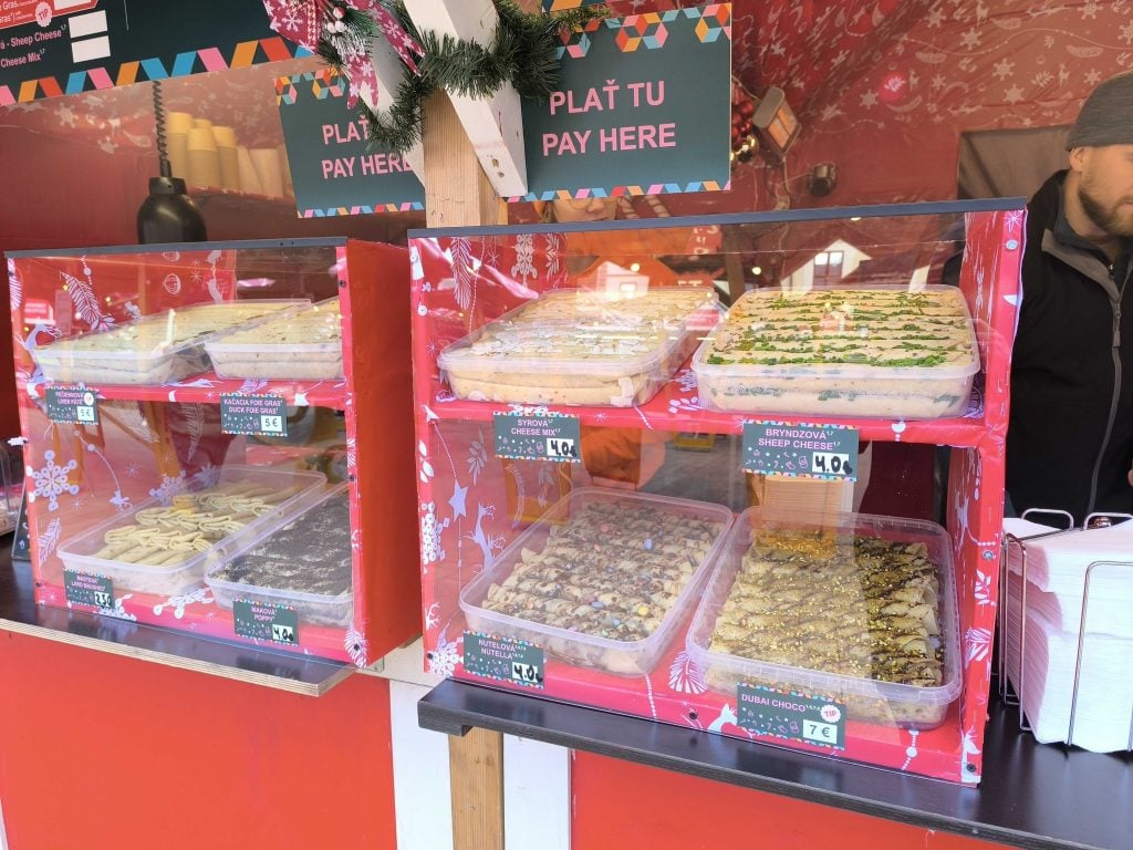 My sme vyskúšali lokšu plnenú Nutellou posypanú mandľami a síce bola na pohľad veľmi tenká, chutila fantasticky. Stála 3,50 eura. V rovnakej cene nájdeš inak na trhoch napríklad aj štrúdľu. Medzi veľmi prijateľnými cenami sme našli prekvapivo aj langoš. Najmenej ťa vyjde 4 eurá (iba s cesnakom), najviac 8 eur.