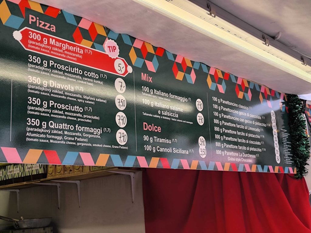 Narazili sme aj na taliansku kuchyňu – za 350 gramový kúsok pizze zaplatíš 5 až 8 eur. Cestoviny ťa vyjdú 7,5 eura. Najlacnejšími jedlami sú na bratislavských trhoch štandardne lokše na rôzne spôsoby. Pri rôznych stánkoch zaplatíš za rôznu veľkosť a príchute od 2,50 po 7 eur (v tejto cene nájdeš lokšu s údajnou dubajskou čokoládou).