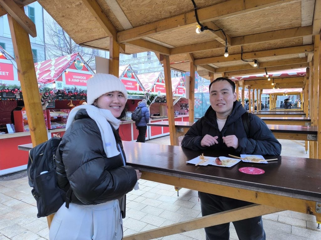 Slovenské pochutiny si užíval aj mladý pár z ďalekej Malajzie. Keďže bratislavské trhy boli prvé, ktoré zaľúbenci zatiaľ navštívili, nevedeli ešte príliš porovnať ceny s inými krajinami, ale sumy v stánkoch im vyslovene drahé neprišli. Jedlo je tu podľa nich fajn a vyzdvihli aj atmosféru mesta.