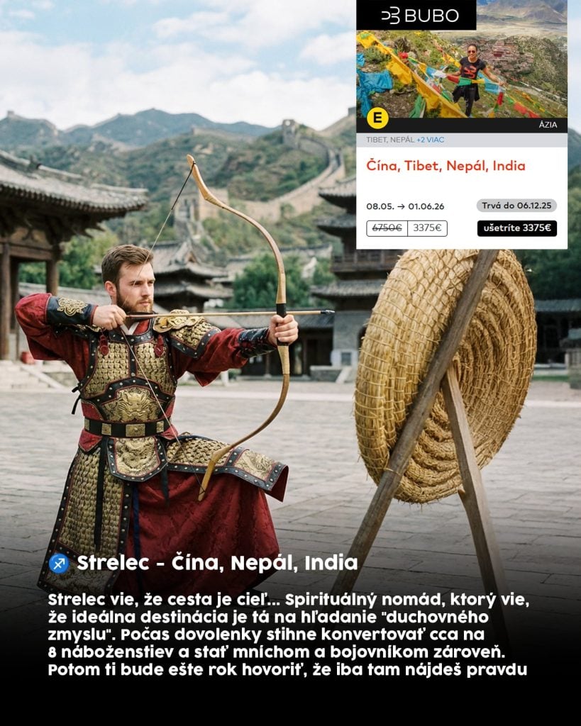 Strelec je presvedčený, že svet je jeho učiteľ a on je žiak aj guru zároveň. Preto sa vydáva do Ázie, kde počas jednej dovolenky stihne nájsť osvietenie, stratiť ho a znova nájsť… ale tentoraz ešte intenzívnejšie. V Tibete bude meditovať, v Nepále sa skoro prihlási do kláštora a v Indii na chvíľu zváži, či sa nemá stať liečiteľom. Konvertuje na osem náboženstiev, osvojí si tri životné filozofie a aj tak povie, že jeho “duchovná cesta práve začína”. Po návrate ti bude rok vysvetľovať, že až tam pochopil pravdu o živote – no zároveň už listuje katalógy ďalších destinácií.