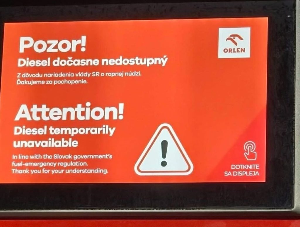 Prvé signály problémov sa pritom objavili už včera. V Galante si redakcia všimla oznam na samoobslužnej čerpacej stanici Orlen, že motorová nafta je dočasne nedostupná.
