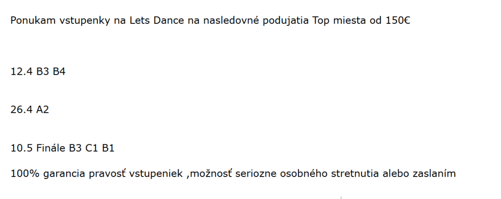 - podozrivo nízka cena (napr. 40 € na finále = treba spozornieť)