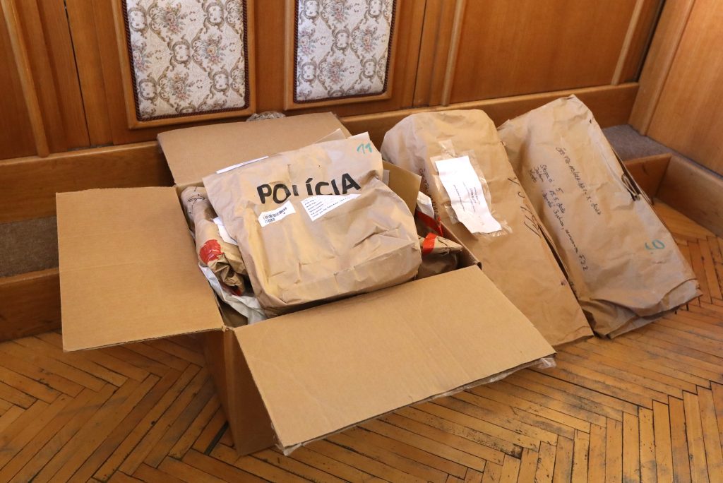 Na súdnom pojednávaní boli prezentované fyzické dôkazy. Ide o oblečenie, ktoré mal predseda vlády na sebe počas streľby, a takisto aj rôzne osobné predmety strelca. Vo vreciach sa nachádzali predmety ako Ficova zakrvavená košeľa, nohavice, ponožky a topánky. Prítomné boli aj rôzne Cintulove veci ako kľúče, taška či jeho kniha Posolstvo obete s venovaním Ficovi, píšu Aktuality.