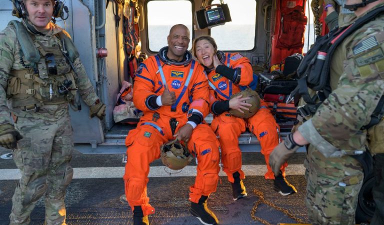 Špecializované záchranné tímy pomohli posádke vystúpiť z kapsuly Orion v Tichom oceáne neďaleko San Diega. Následne boli prevezení na námornú loď a odtiaľ budú letecky prepravení do Johnsonovho vesmírneho strediska NASA v Houstone v Texase.