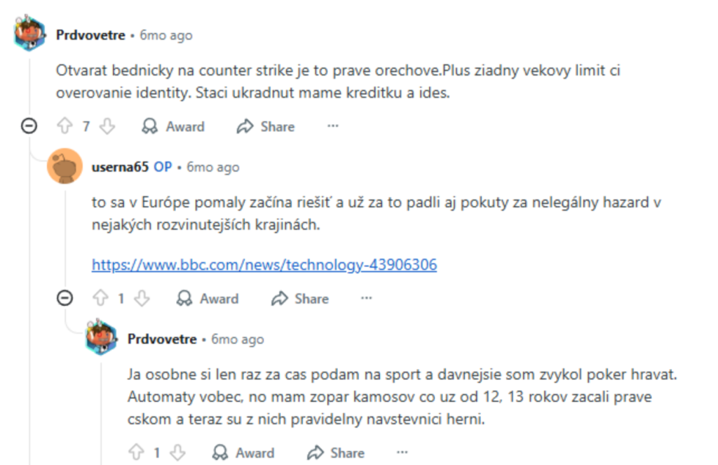 Pri registrácii u legálnych prevádzkovateľov online sa vyžaduje overenie totožnosti dvoma dokladmi, pričom niektorí už aktuálne využívajú pokročilú technológiu biometrického overovania totožnosti. No v online priestore je možné pravidlá obísť. Práve krádež dokladov a kreditných kariet rodičom býva spôsobom, akým sa deti dostanú k falošnej identite a financiám na loot boxy.