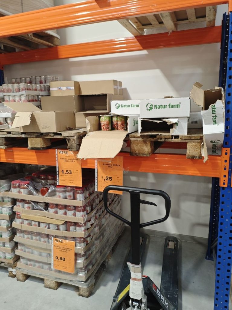 Ak by niekto chcel prirovnávaniu ku skladu oponovať, ten nech spozornie – pritom, ako sme prechádzali novozámockým Mere, sme videli viacerých ľudí, ako sa v zadnej časti predajne zastavujú a s rozpakmi pozerajú na priechod do ďalšej miestnosti. Bol to sklad, nakupujúcim však chvíľu trvalo vyhodnotiť, že nejde o ďalšiu časť predajne. Raz darmo, predajňu, v ktorej je tovar nakopený na paletách, je ťažké odlíšiť od skladu, v ktorom je tovar nakopený na paletách.