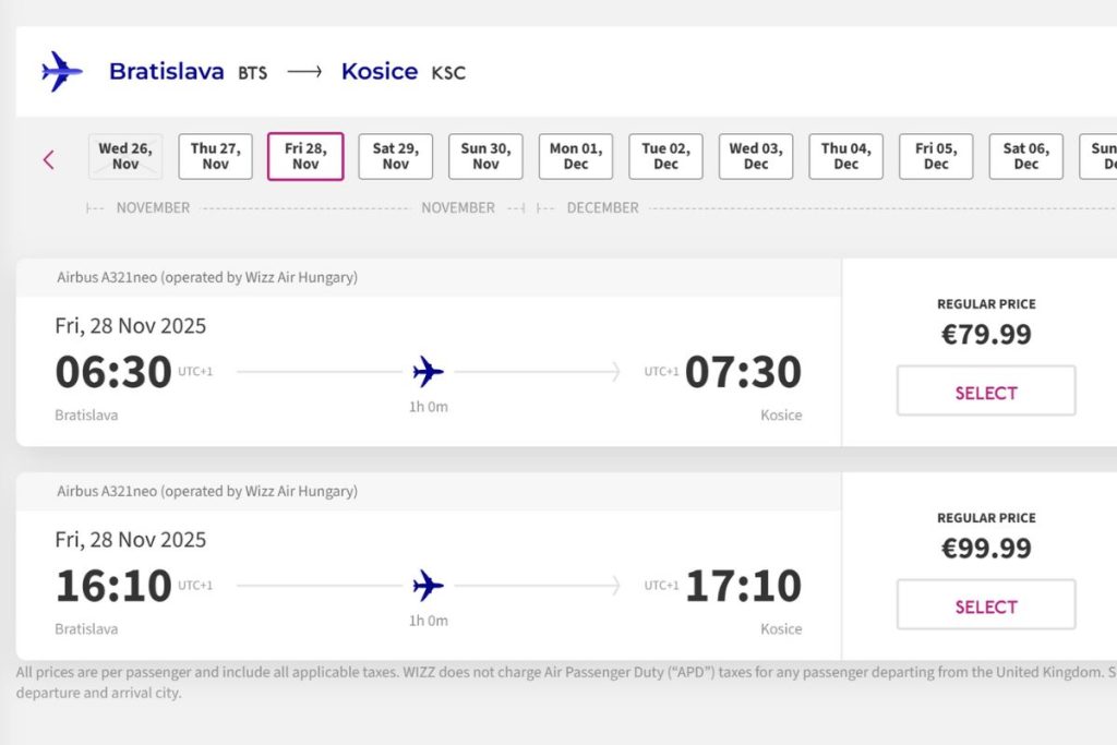 Podľa košického letiska je to jasný signál, že rýchle vzdušné spojenie dvoch najväčších slovenských miest ľudí láka. A niet sa čo čudovať – cesta, ktorá vlakom trvá štyri až päť hodín, zaberie vo vzduchu približne 50 minút.