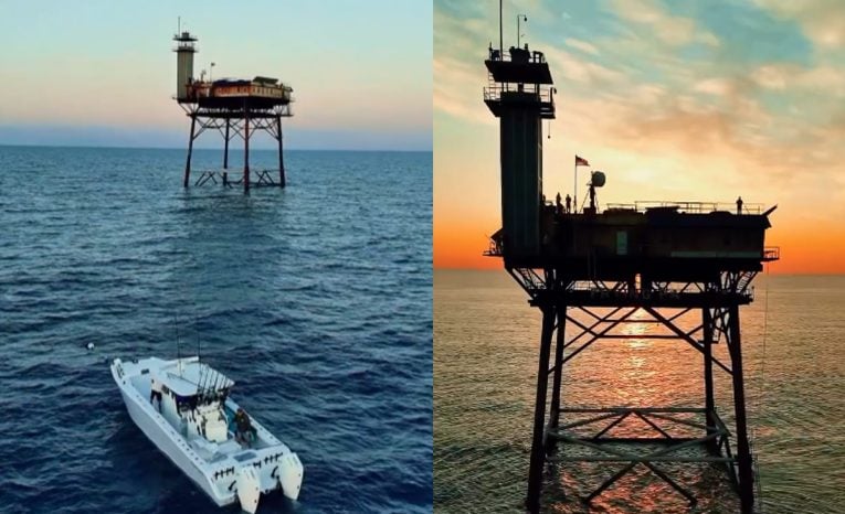 CestovanieCelá konštrukcia je postavená na oceľových pilieroch, ktoré trčia z vody.