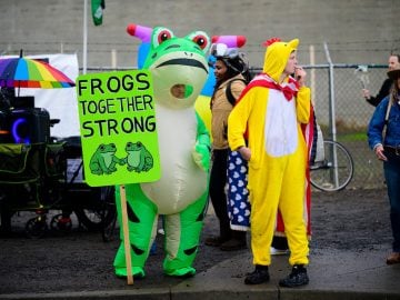 Žabiak konfrontujúci policajtov sa stal virálnou hviezdou internetu.