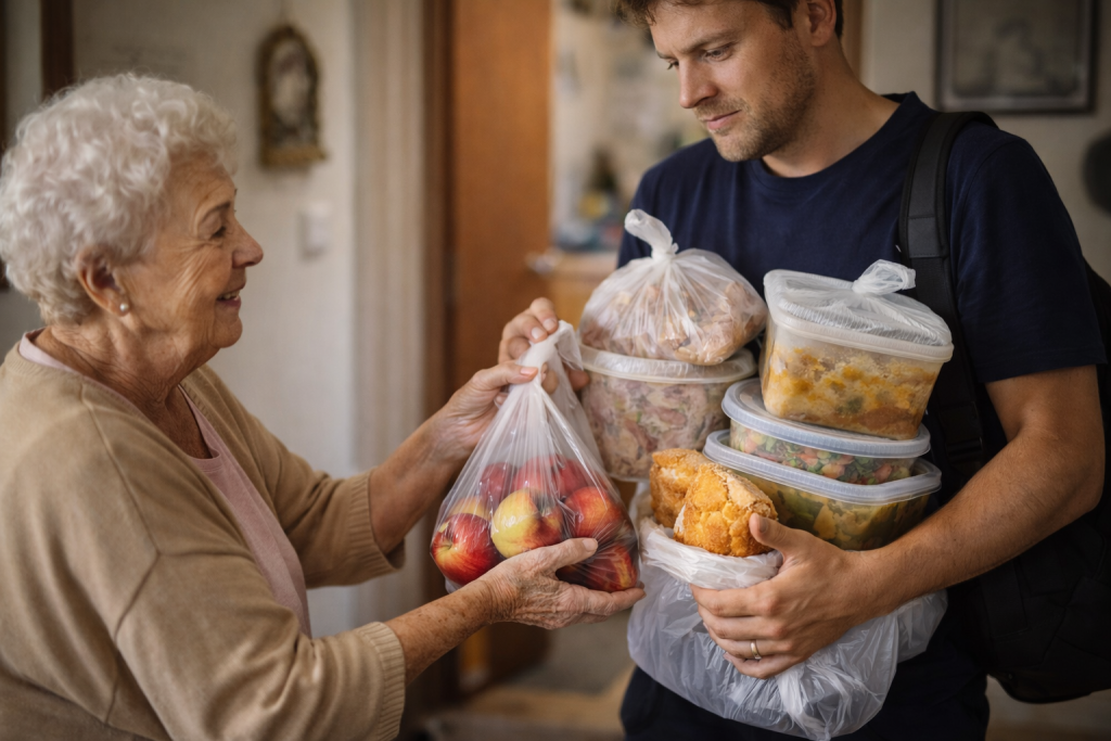 Láska v slovenskej rodine sa často balí do dóz, pohárov a mikroténových tašiek. Návšteva sa málokedy končí len rozlúčkou. Skôr odchodom s plnými rukami. Koláč, polievka, rezne, ovocie zo záhrady, niečo z mrazničky, niečo „len tak, nech je“. Odmietanie nemá význam. Tento proces sa už nedá zastaviť. Nie je to len o jedle. Je v tom odkaz, že domov ostáva miestom, kde sa človek nemusí starať o všetko sám. Niekto naňho myslí aj po odchode.