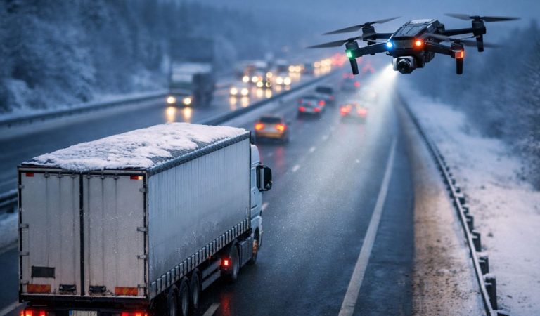 Monitorovanie z výšky má pritom veľkú výhodu – dron dokáže zachytiť aj situácie, ktoré by si policajná hliadka pri bežnej kontrole nemusela všimnúť. Strecha kamióna je často vyššie, než kam človek bežne dovidí, a práve tam sa najčastejšie drží snehová vrstva alebo ľadová „doska“.