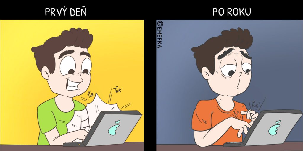 Po roku: Povedať, že ideš na 30 percent, by bolo prehnané. Prakticky len testuješ hranice a zisťuješ, koľko môžeš bezducho ťukať do klávesnice, kým si niekto všimne, že ani nemáš otvorené okno.