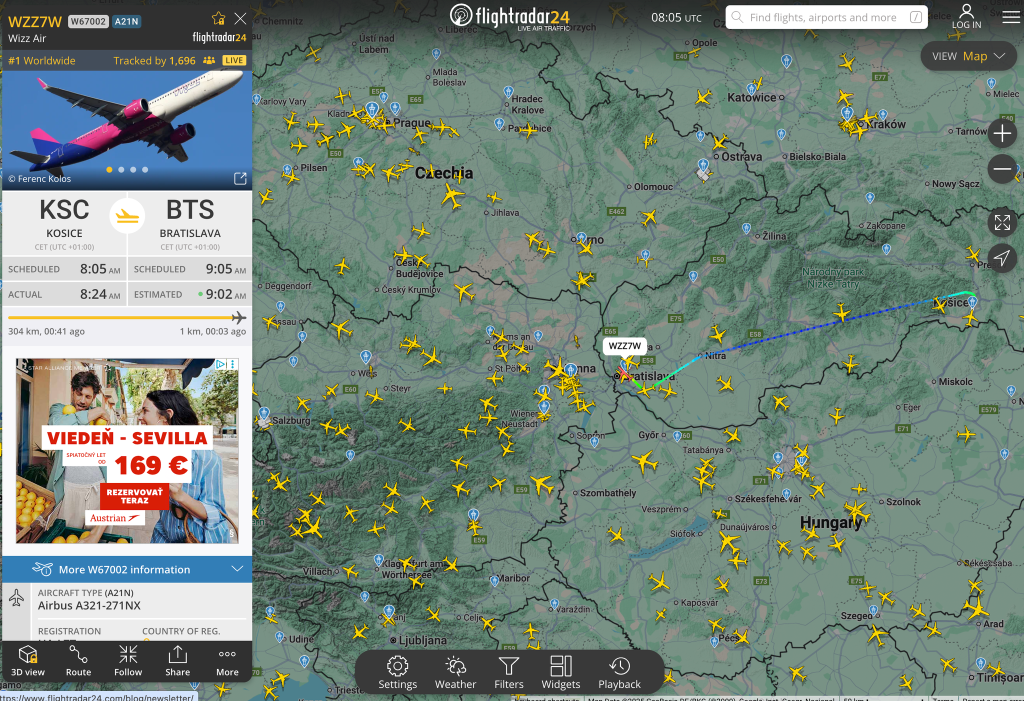Spoločnosť Wizz Air ovládla slovenské nebo. Prvý let z Košíc do Bratislavy sa stal najsledovanejším letom na celom svete