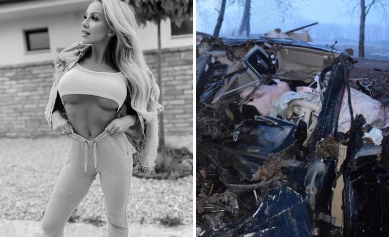CelebrityMercedes narazil do stromu a okamžite začal horieť.
