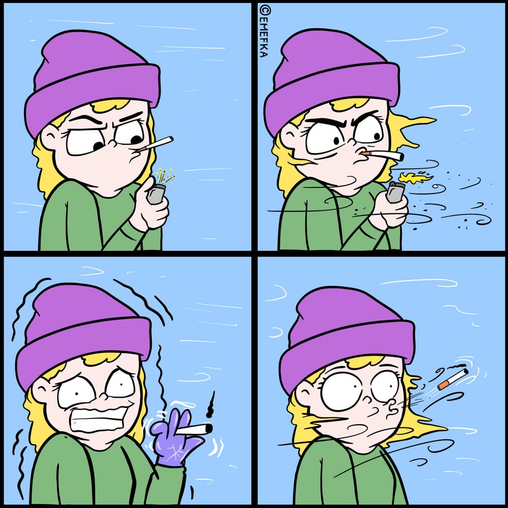 Zima fajčiarom skutočne nepraje. Premrznuté prsty sú len začiatok, no vrchol drzosti je, keď ti vietor vytrhne cigaretu priamo z úst. Neuveriteľné.
