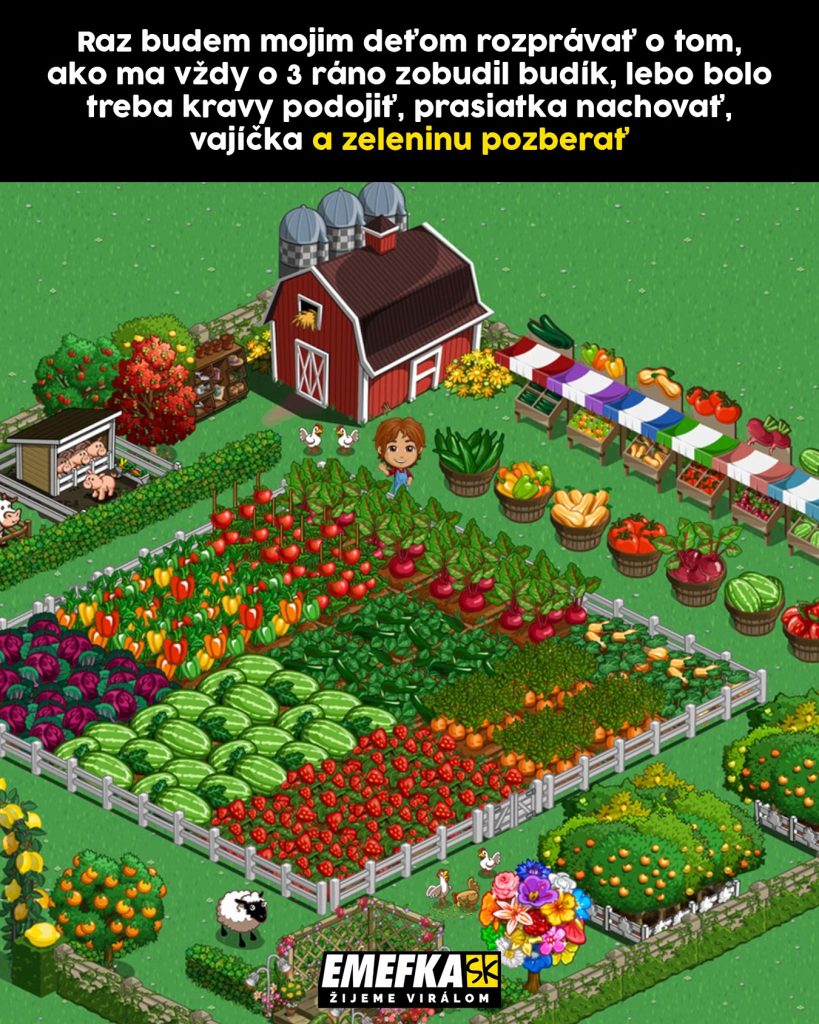 Ak žiješ v meste a živé hospodárske zviera vidíš tak raz za dva mesiace, nezúfaj! Stále raz budeš môcť svojmu potomstvu píliť uši s príbehmi o tom, ako si kedysi tvrdo makal na farme, kŕmil zvieratá a zbieral úrodu. Stačí, že si počas „zlatej éry facebookových hier“ aspoň nejaký čas strávil s Farmville.