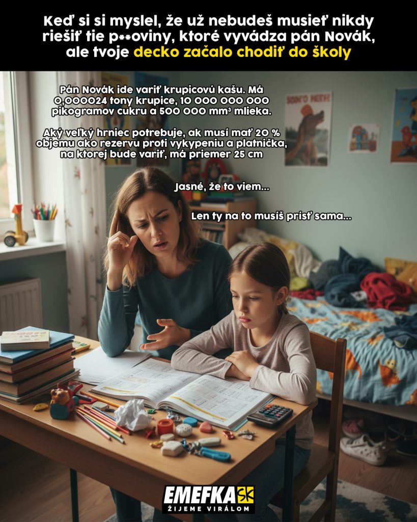 Často sa hovorí, že výsledky testov a úloh v slovenských školách nehovoria o ničom inom, ako o schopnosti riešiť testy a úlohy v slovenských školách. Najlepšie sa o tom človek presvedčí na vlastnej koži – keď sa sám stane rodičom a zistí, že všetky tie vzorce a poučky nepoužil, odkedy vyšiel zo školy.