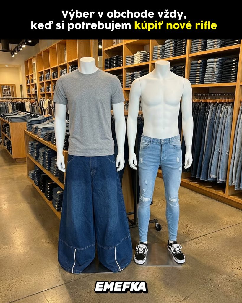Triviálna úloha ako kúpa džínsov sa mení na boj už po prvých krokoch v obchode. Niečo také ako „normálny strih“ sa stáva ohrozeným druhom v mori plnom extravagancie.