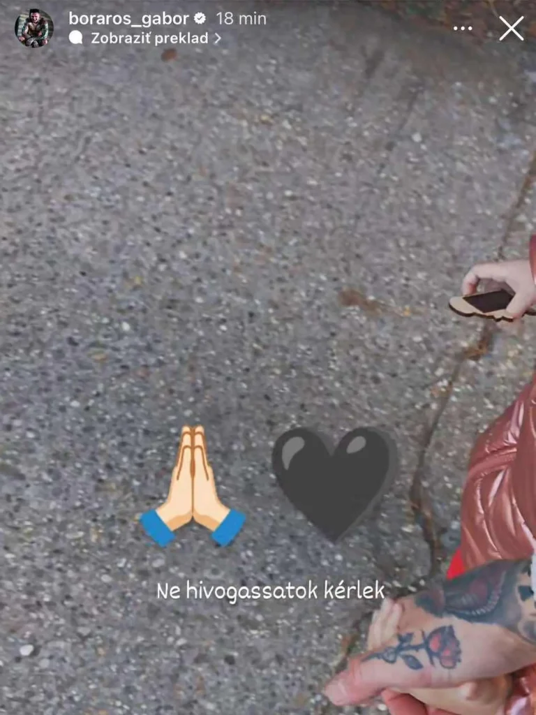 Gábor Boráros sa po tragickej správe ozval na Instagrame veľmi stručne, no o to emocionálnejšie. Zverejnil odkaz, v ktorom ľudí žiadal o rešpekt v tejto extrémne bolestivej chvíli: „Prosím, nevyvolávajte mi!“