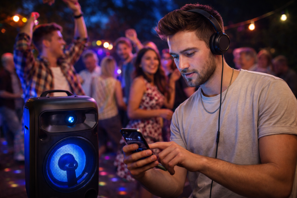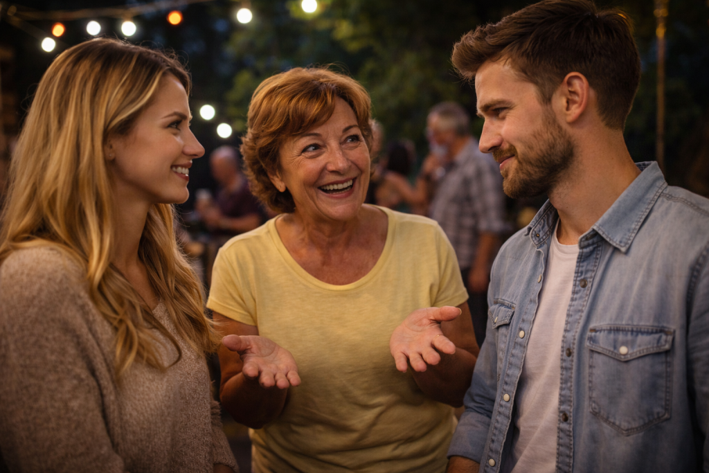 Prinesie reproduktor a pustí vlastný playlist. Tvrdí, že toto sa dnes počúva a že to musí mať moderný vibe. Starší krútia hlavou, mladší tancujú. Po hodine aj tak zaznie: „Daj niečo normálne.“ A na rad prídu ľudovky.