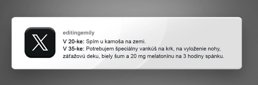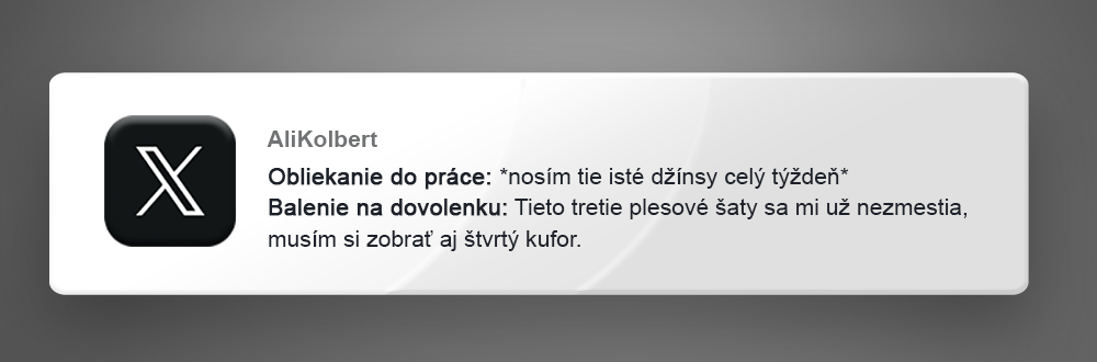 Sociálna sieť X, ktorú si mnohí stále pamätajú ako Twitter, predstavuje nekonečnú studnicu takejto kolektívnej ľudskej skúsenosti. Používatelia tam s obľubou uverejňujú krátke postrehy, ktoré trefne definujú našu existenciu v tomto modernom a rýchlom storočí. Nájdeš tam bizarné situácie z ranného vstávania, nákupných centier alebo z trápnych momentov v spoločnosti iných ľudí. Tieto trefné príspevky dokazujú, že všetci v skutočnosti fungujeme podľa jedného a toho istého vtipného scenára.
